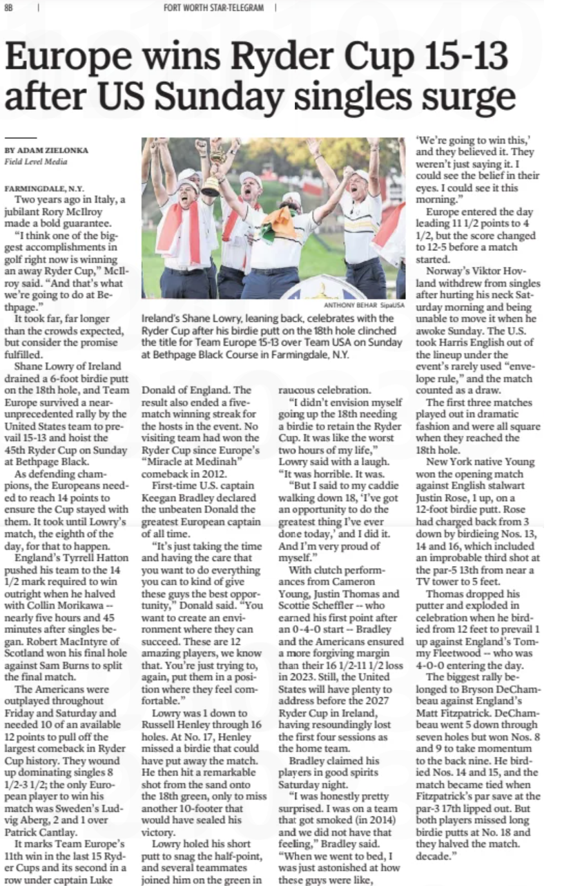 Fort Worth Star-Telegram (via Field Level Media), Sept. 28, 2025